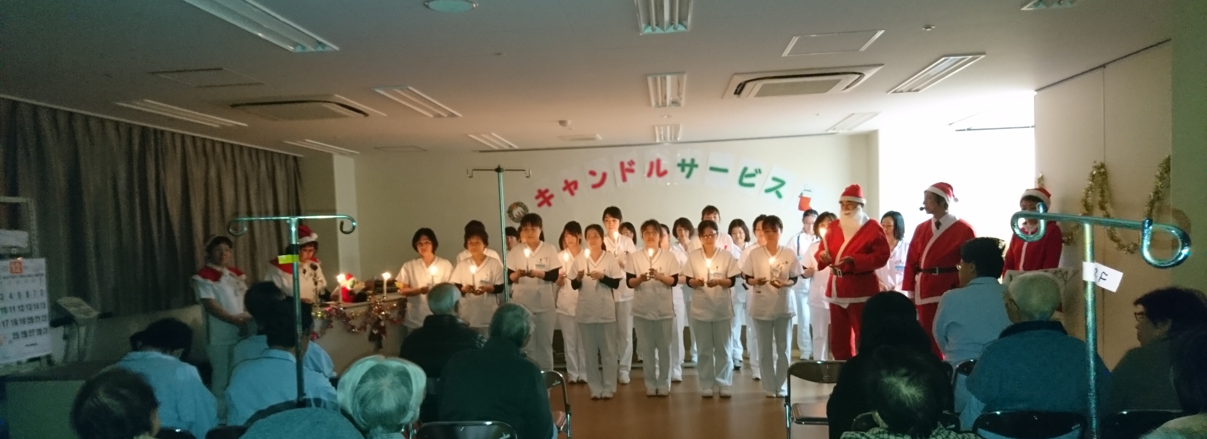 クリスマスを病院で過ごす患者様に少しでもクリスマス気分を味わっていただけたらと思い、看護部によるキャンドルサービスを催しています。