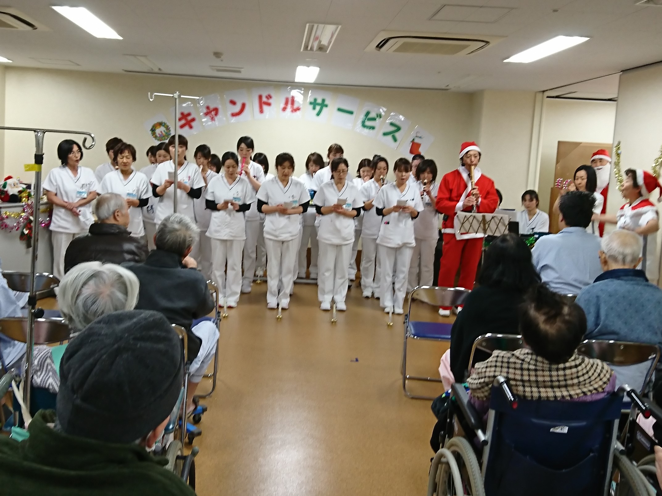 クリスマスを病院で過ごす患者様に少しでもクリスマス気分を味わっていただけたらと思い、看護部によるキャンドルサービスを催しています。